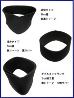 シングル高さ5cm(裏ラバー)、シングル高さ8cm(ジャージ)、より密閉率の強いダブルネックリングと3種類がございます。