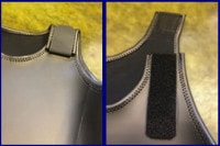 着脱しやすいベルクロタイプは首、肩周りに折り返し縫い加工を施し高級感があります。